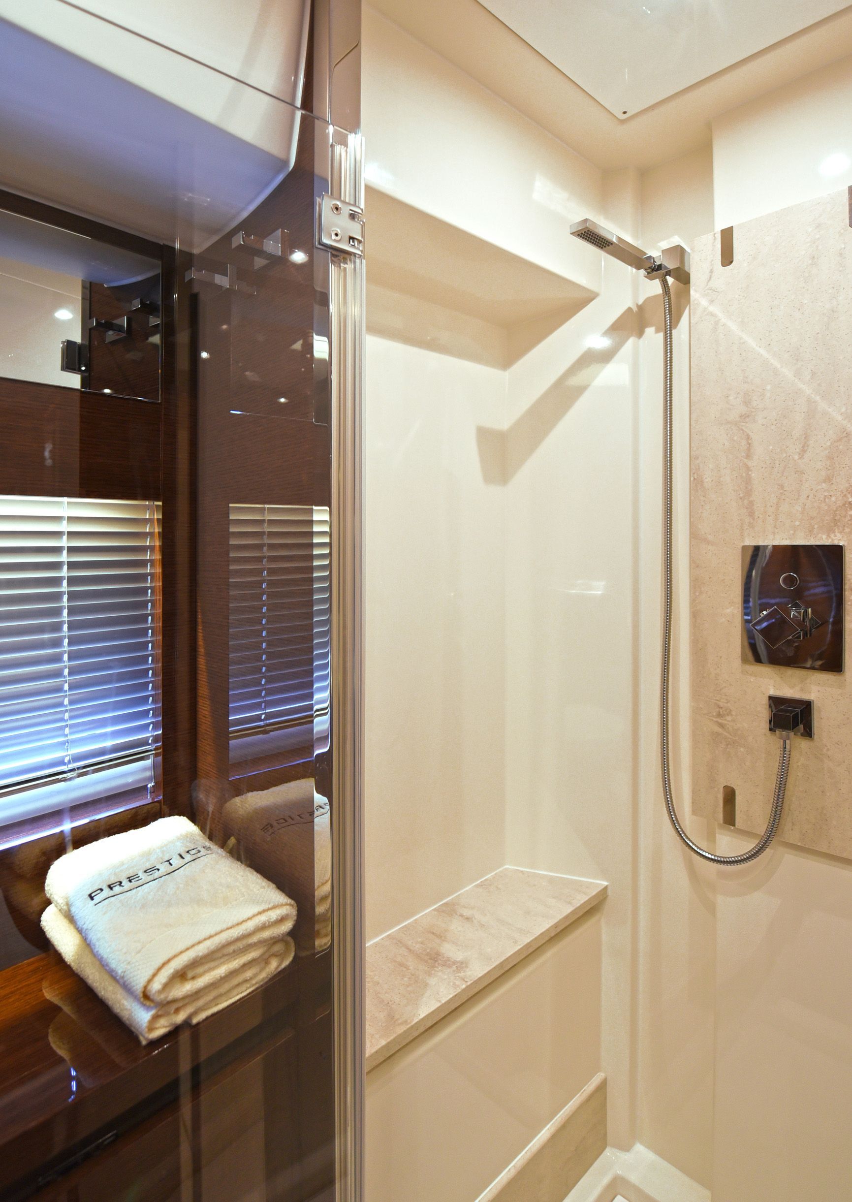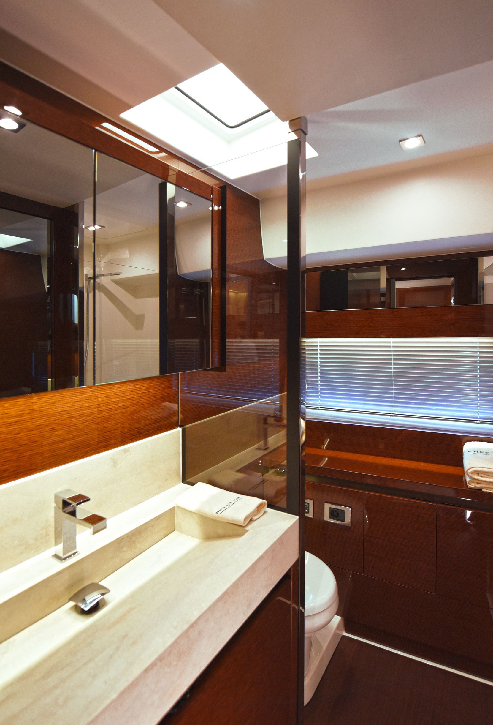 Ein besonderes Highlight der Prestige 630 ist der Kreiselstabilisator, der Seakeeper, der fast bewegungslose, entspannte Stunden vor Anker und eine ruhige Navigation auch bei niedrigen Geschwindigkeiten und rauem Wetter ermöglicht.