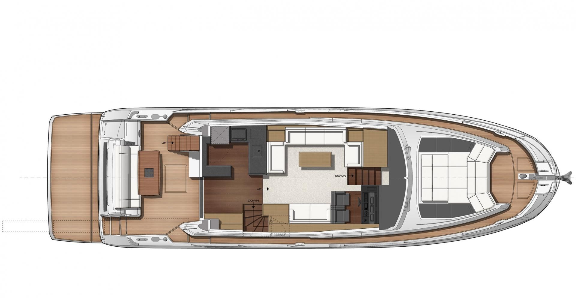 Der 360-Grad-Panoramablick und der exklusive Zugang über einen privaten Niedergang zur lichtdurchfluteten Eignerkabine mittschiffs sind typisch für eine Prestige-Yacht und zugleich außergewöhnlich.